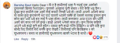 दुई वटा फिल्म एकै दिनमा चल्ने हुँदा कुन फिल्मले बजार तताउछ त्यो फिल्म हलमा फिल्म चलेपछि नै थाहा हुनेछ । बाजी कसको हातमा पर्ला भन्ने कौतुहलताको सिर्जना भने भएको छ । हुनुत यो कलाकार भन्दा पनि निर्माण गर्ने व्यक्तिहरुको हो । बर्षा सिवाकोटीको फेसबुक स्टाटस यस्तो रहेको छ ।